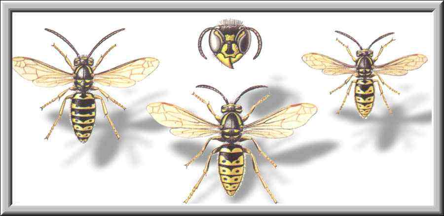 Four yellow spots at the rear of the thorax. Nests in holes in the ground